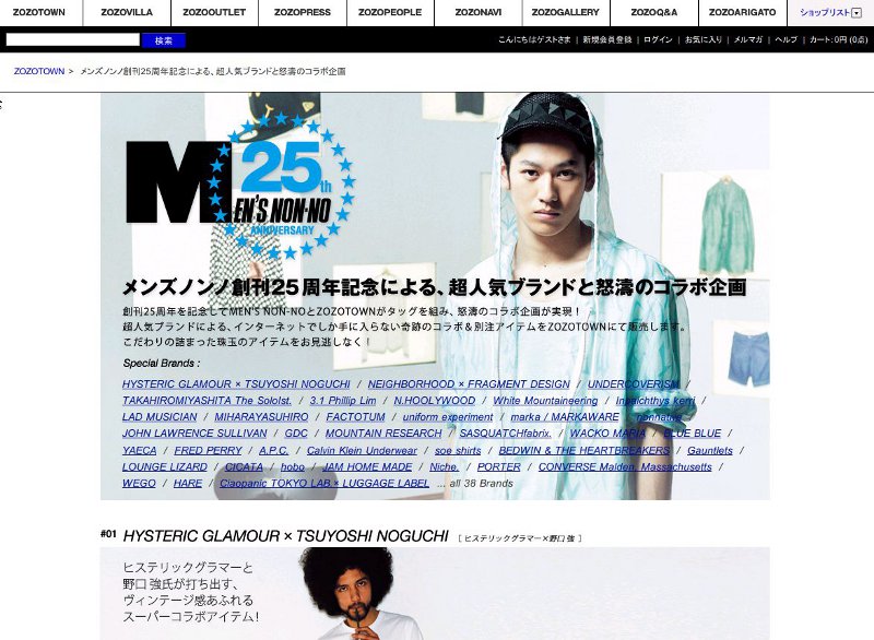 5月10日発売の「メンズノンノ6月号」では、創刊25周年を記念し、36ページの通販小冊子を同梱。人気の40ブランドとのコラボ商品を59点紹介した。