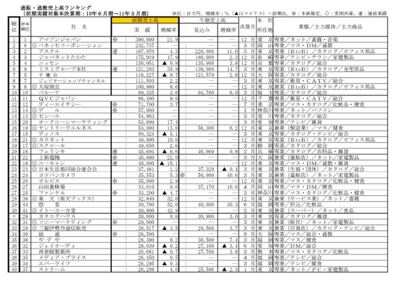 第56回通販・通教売上高ランキング 300社売上高、2桁増で4兆5千億円超に