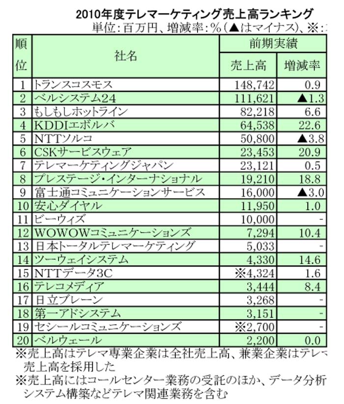 テレマーケティング売上高調査 20社合計で5973億円に、通販系業務が伸長