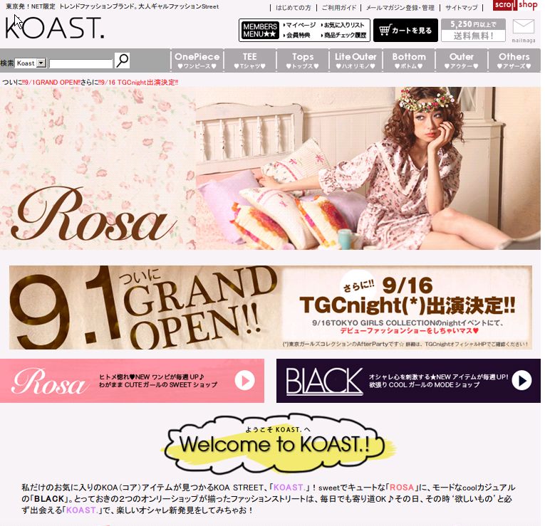 新ブランドの名称は「KOAST.(コースト)」。同日に通販サイトを立ち上げた。同社の基幹媒体「ラプティ」は20代後半~30代前半の女性が中心だが、新ブランドはそれよりも若い20代前半を対象とする。