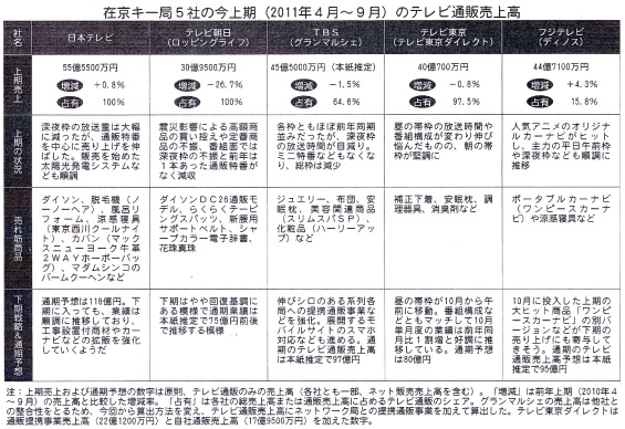 在京キー局の上期TV通販売上 各局概ね横ばい、ディノス復調へ