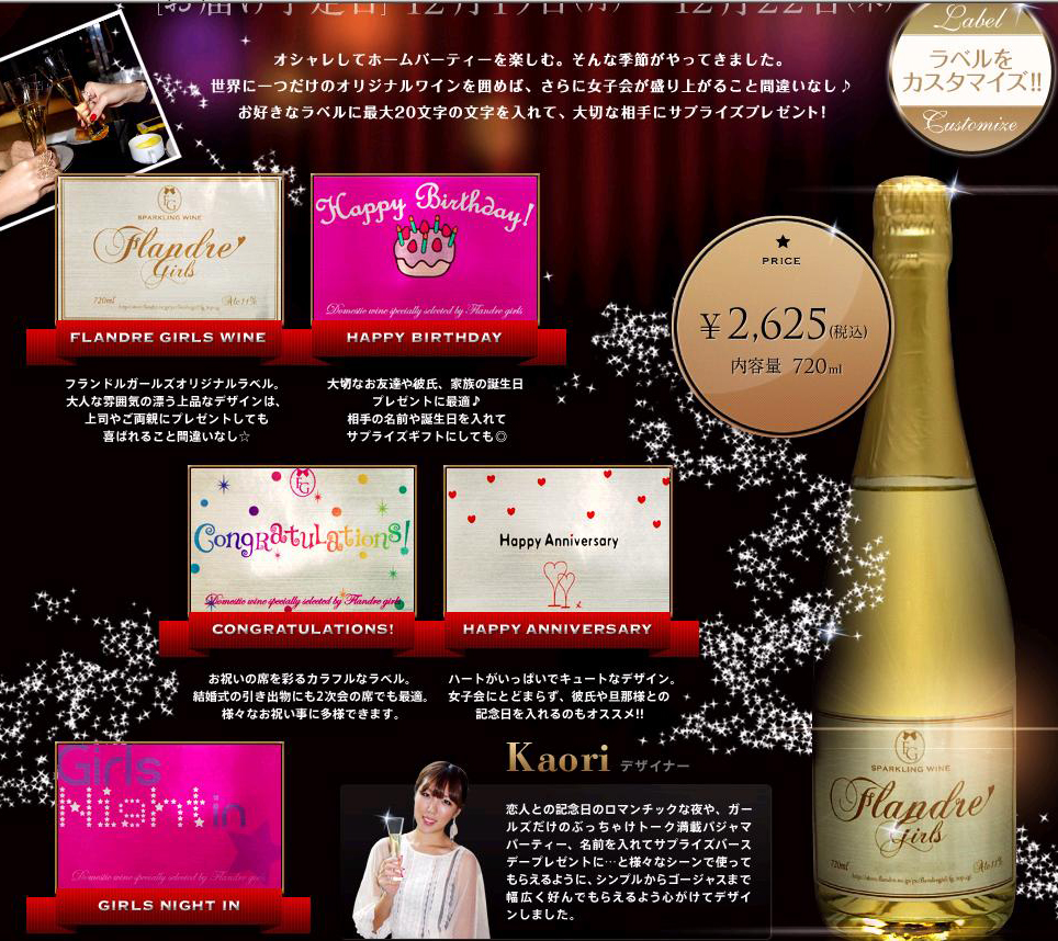 今年は、通販サイトとして"物販"につなげることが課題だ。そのため、トライアルとして、昨年12月にラベルやラッピングをカスタマイズできるオリジナルのスパークリングワインを商品化して「フランドルオンラインストア」で販売。一定の成果を得たようだ(画像)。