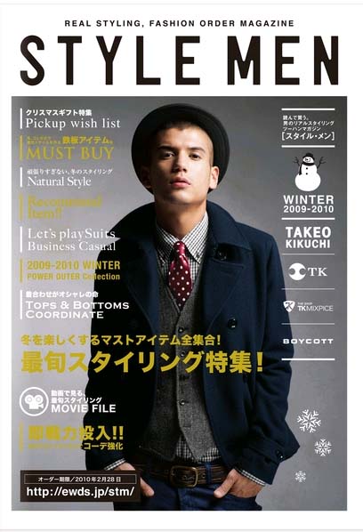 主力のメンズブランド「タケオキクチ」や「TK」「ボイコット」などを中心に冬物の衣料やバッグ、靴など最新アイテムを紹介。創刊号では、クリスマスギフト特集を組み、男性へのプレゼントを考えている女性も囲い込む内容とした。
