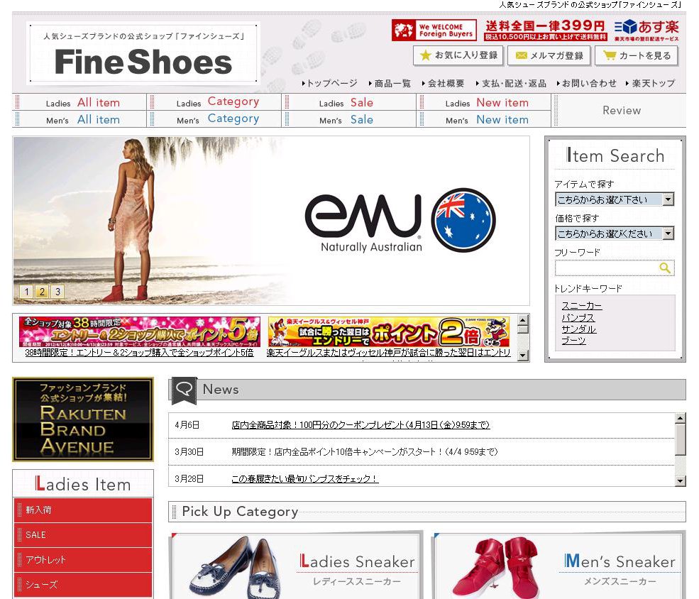楽天は4月15日、「楽天市場」内にシューズブランドの公式ショップを集めたコンテンツ「ファインシューズ」を本格オープンした。先行する靴の通販サイト「ジャバリ」や「ロコンド」が"返品無料"を前面に打ち出すのに対し、楽天は顧客それぞれに合ったサイズを知らせる機能の実装を急いで差別化を図る。