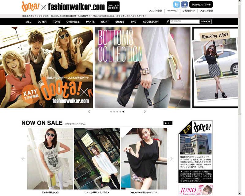 また、サイト開設に合わせて、6月19日発刊のファッション誌「KATY(ケイティ)」7月号とタイアップし、韓国の人気歌手ジュノさんが「ドゥータウォーカー」で扱う一押し商品を紹介するほか、通販サイト内でもジュノさんのメッセージ動画を配信している。
