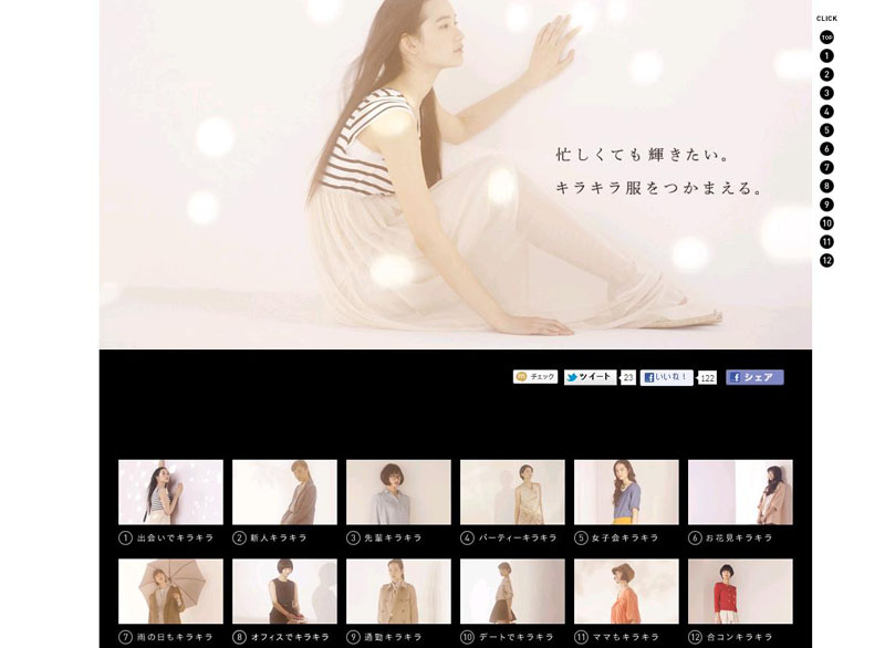 「キラキラアイルミネ」を全体のキャッチコピーとし、花見やデート、女子会など12のシーンに合わせたコーディネートを紹介する内容とした。「アイルミネ」に人気ショップがたくさんあることを伝える目的もあり、シーンごとに複数ブランドの商品でスタイリングしたのも特徴だ。