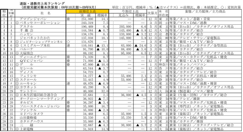 第53回通販・通教売上高ランキング 上位254社売上高、6%増の4兆円超に