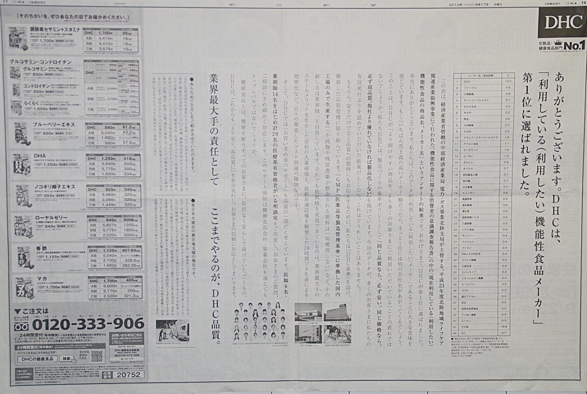 DHCの全面広告に物議――"いわくつき"調査、無断で使用