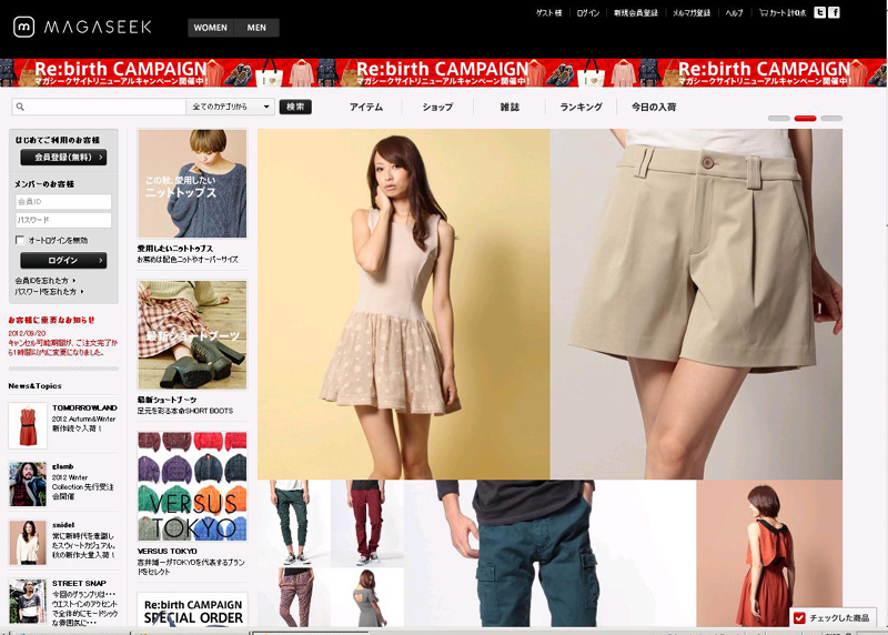 マガシークは9月20日、ファッション通販サイト「マガシーク」を全面リニューアルした。新サイトでは訪問客の行動履歴から顧客に合った商品をトップページに表示し、「見れば見るほど自分色に染まるサイト」(井上直也社長)とした。競合では「ゾゾタウン」が購入者の声を、「スタイライフ」はスタッフのコメントをタイムラインで流しているのに対し、マガシークは文字情報を極力少なくして画像中心に見せることで、同質化が進む衣料品通販サイトで個性を出す。