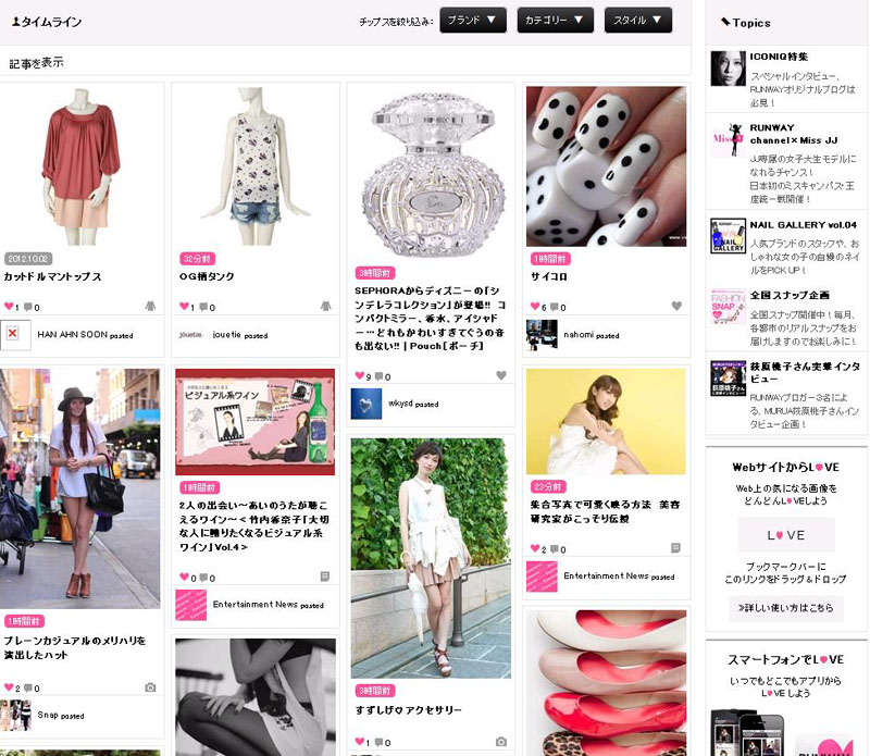 今年6月にはコミュニティーサイト内のマイページに気になった商品やブログ、スナップなどを蓄積できる「LOVE」ボタンを追加。自分に近いユーザーとの意思疎通をとりやすくした。