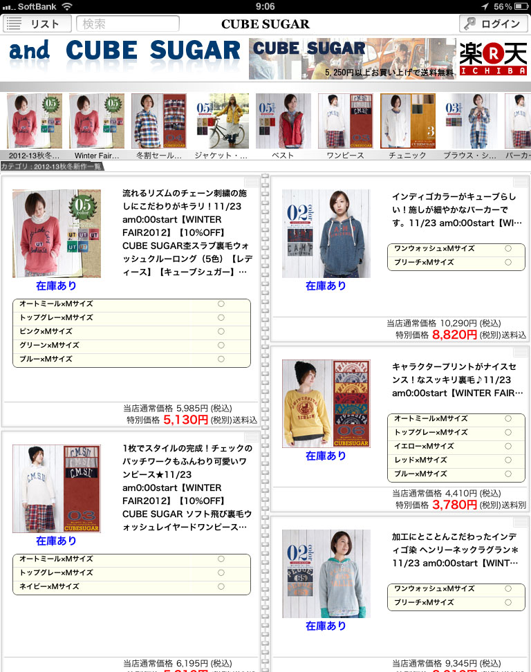 また、商品詳細ページのPV数は月間約8万(iPhoneおよびiPad、Android端末の合計)で、うち「楽天市場」の買物カゴ(同アプリでは「楽天市場」の買物カゴに遷移して決済する)のPVが約1500件。システム上、「楽天市場」の買物カゴでの正確な決済件数までは追えないが、質の高い顧客がアプリをダウンロードしていることから、買物カゴに入った顧客の8割程度が実際に商品を購入していると分析する。