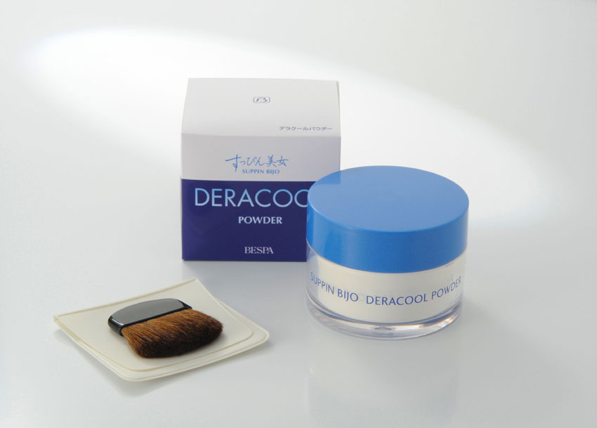 今年6月に発売したのは、清涼感をキーワードにしたフェイスパウダー「すっぴん美女 デラクールパウダー」(写真㊤)。パウダーの内部に海洋深層水を閉じ込めており、つけた瞬間に気化熱によってひんやりとした清涼感が得られ、一日中化粧崩れしにくいメイクが保てるという。そのほかにも保湿や引き締め、UVカットなど複数の役割をこなすことが可能。「日中のメイクだけでなく、風呂上りや就寝前のお手入れ用としても使用できる」(同社)とする。