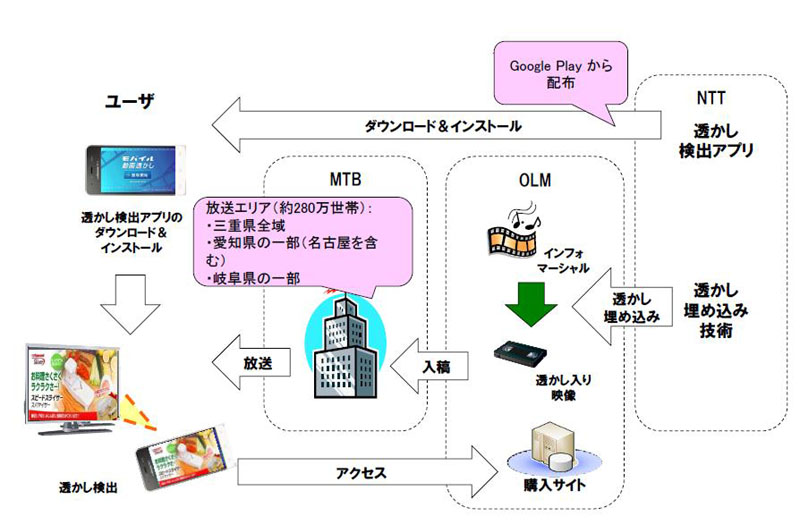 利用者は専用の「モバイル動画透かし検出ソフトウェア」(アンドロイド搭載端末専用)をスマホにインストールする必要がある。三重テレビの通販番組にQRコードを表示し、専用アプリのダウンロードを促す。