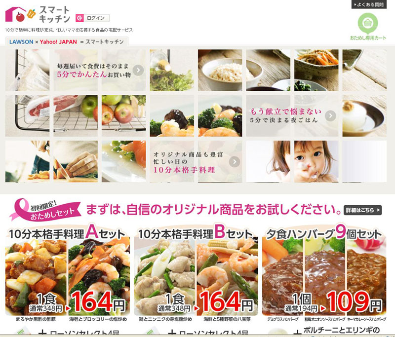 ローソンとヤフーの合弁会社、スマートキッチンは1月17日から食品および日用品の通販事業を開始した。短時間で簡単に料理可能な下処理済みの野菜や調味料をセットした料理キットなどのPB(プライベートブランド)商品や生鮮品などを主力とし、商品面で先行する競合と差別化を図りながら、ローソンとヤフー両社の集客力を使い、忙しい子育て世帯などを獲得する。2年後に黒字化、3年後をメドに年商1000億円の達成を目指す。