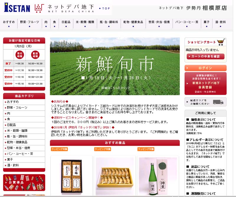 同社が始めたのは「伊勢丹ネットデパ地下」。1月19日に相模原店(神奈川)、同月20日に府中店(東京)でスタートした。同社の通販サイト「I ONLINE(アイオンライン)」とは別サイトで運営する。