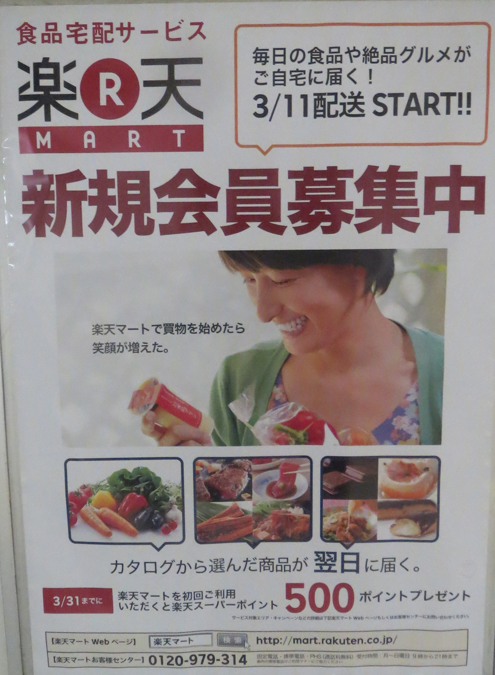 関係筋によると、楽天では楽天マートについて「これまで展開してきたサービスは、スタートからすぐに規模拡大に向かう傾向があったが、(楽天マートに関しては)慎重に事業を進めたい」とコメントしていたという。ポスティングのほか駅構内でのポスター広告などを行なってきたが、急激な拡大に加え、こうした積極的な広告展開があだとなったようだ。