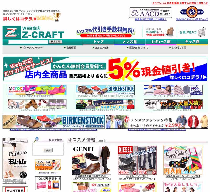 3-1.jpg靴製造販売のロイヤルが運営する通販サイト「Z―CRAFT(ズィークラフト)」が好調だ。近年は人気サンダル「クロックス」をテコに業績を伸ばしており、2012年9月期のネット販売売上高は50億円で、今期も増収となる見込みだ。同社では、早期に100億円まで伸ばしたい考えだ。