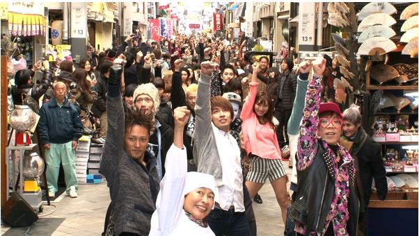 同社によると3月某日の平日午前中の浅草新仲見世商店街で「フラッシュモブ」を実施。突然のボイスパーカッション(打楽器の音色を口で表現する技術)を合図に1人のダンサーが踊り出し、その後、複数のダンサーやパフォーマーがダンスやパフォーマンスを披露。中盤から「こらー、あんたたち、商店街で何やってんのよ。私が本当のダンスをみせてやるから」と商店街の住人に扮し割烹着に身を包んだダンサーが登場し、TRFのヒット曲である「イージー・ドゥ・ダンス」が流れ、「TRF イージー・ドゥ・ダンササイズ」の振り付けを取り入れたダンスを踊り出し、これにプロダンサーが追随。終盤にはプロダンサーのほか、一般人に扮していた事前に公募した一般ダンサーなど総勢230人が商店街中で一斉に踊り始めるという圧巻な集団ダンスを披露した。