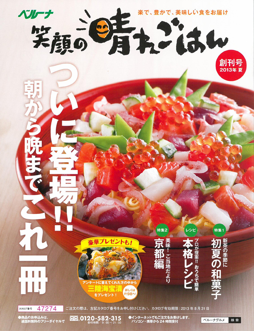 カタログの名称は「笑顔の晴れごはん」。同社食品通販の顧客に配布する。A4ワイド版100ページで、約450の食品を掲載した。これまで同社では、食品のジャンルごとにチラシやカタログを発行していたが、これを統一。合計税込5250円以上の注文で送料を無料とした。今後は季節ごとに同カタログを発行する計画だ。カタログには「から揚げのレシピ」や「朝ごはんに使える食品」など、レシピやマナーなど食に関する情報も掲載。「読み物としても楽しめるカタログにした」(経営企画室)という。