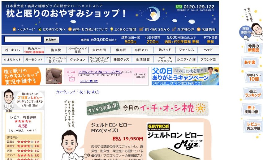 2月から「まくら断トツ化計画」の一環として開始した「まくら広告」も好調に推移。宣伝や企業ロゴなどのデータを枕カバー部分にプリントしたもので、送料無料で100円という安さもあり、毎週日曜日の販売時には注文が殺到するヒット商品となっている。河元社長は「枕は場所を取る商品のため、実店舗よりもネット販売向きだ。普及率は100%だが、ITを組み合わせれば老舗にも勝てると思っている」と話す。今後も「日本一」に向けて、様々な販促を打ち出す。