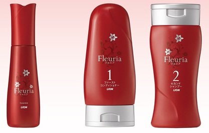 発売する「Fleuria(フルリア)」は、中高齢層を対象にしたエイジングケアのヘアケアシリーズ。発毛促進や脱毛予防の作用を持つ成分「6―ベンジルアミノプリン」を配合した「フルリア薬用育毛エッセンス」(=画像(左)、90ミリリットル、税込4400円)のほか、「フルリアファーストコンディショナー」(=同(中)、200ミリリットル、同1560円)、「フルリアセカンドシャンプー」(=同(右)、同)の3アイテムを展開する。