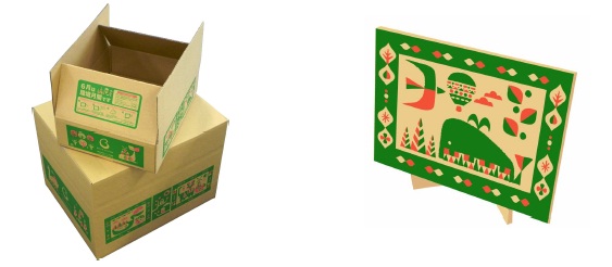 今年の環境月間で展開する商品配送の段ボールは、女性クリエイター・スズキトモコさんによるエコロジー・自然をテーマとしたデザインを採用。さらに新たな試みとして、段ボールを使ったフォトフレームやアートボードの作り方を印刷した。