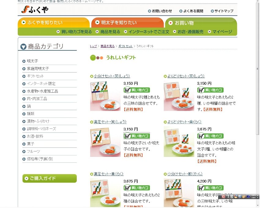 ギフト商品はそれぞれの価格帯別に、内容を見直して提案する。少量ずつの明太子をセットした「小分け」タイプと、いろいろな明太子をセットした「よりどり」タイプのほか、ボリューム感のある「満足」タイプの3タイプを用意している。