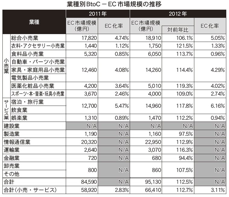 経済産業省のEC市場調査、12年度国内BtoC・市場規模9兆5000億円