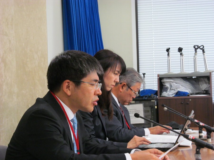 ※写真は、東京地裁に訴訟を提出後、厚労省で会見するケンコーコムの後藤玄利代表(一番手前)と訴訟代理人の関葉子弁護士、阿部泰隆弁護士