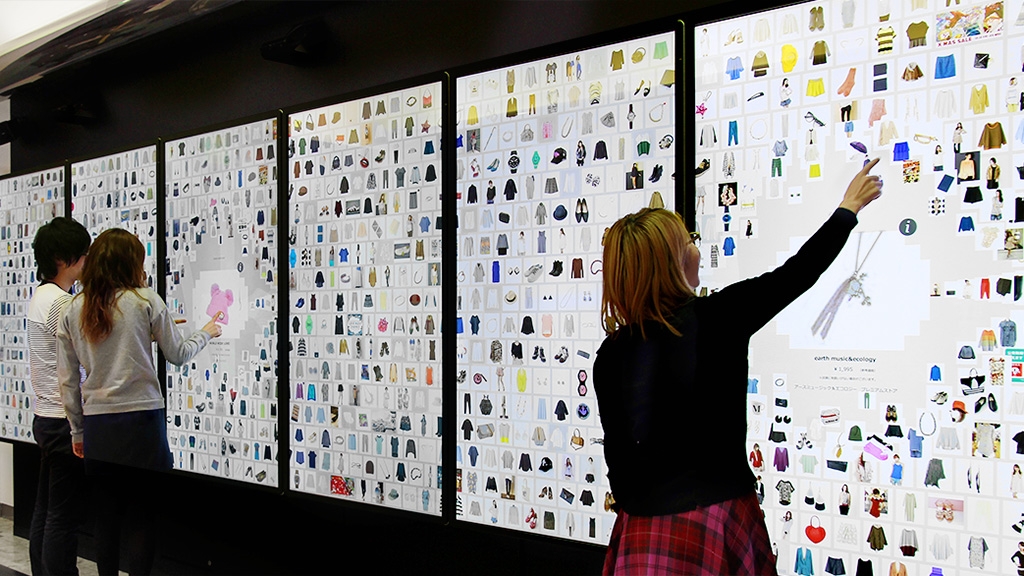 12月には、こうした商品データベースを実店舗で活用する取り組みにも着手。渋谷パルコ内にチームラボなどと共同開発した大型の双方向型サイネージ「P―WALL」を設置し、当該店舗に出店するテナントの商品情報を表示することで従来のショーウインドーでは不可能だった複数ショップ約1000点の新着商品との接点を設けた。