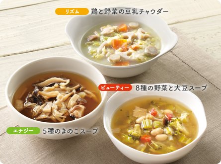 発売したのは「ファイトメンテ」で、抗酸化作用のある人参やトマトなどを使用した「ビューティ」や、ブロッコリーや大根などデトックス作用がある野菜を使った「リズム」、しょうがやきのこなど免疫効果が期待できる野菜を使用した「エナジー」の3ラインを用意した。