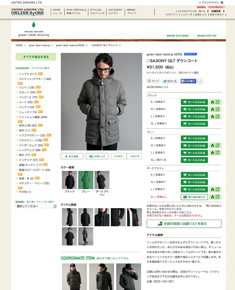 ユナイテッドアローズは3月31日、自社通販サイト「ユナイテッドアローズオンラインストア」で実店舗に商品を取り寄せて試着ができるサービスをスタートした。まずは、同社がスタートする「ユナイテッドアローズグリーンレーベルリラクシング」の5店舗でテスト運用し、対象となる店舗やブランドを増やしたい意向だ。