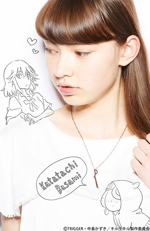 キルラキルは昨年10月から3月まで、MBS・TBSなどで放映された深夜アニメ。アニメの変身シーンや制服をイメージしたネイルシール2種類(価格は税別980円)と、主人公・纏流子(まとい・りゅうこ)が劇中で使う武器「片太刀バサミ」をモチーフとしたネックレス(=画像、同2900円)、劇中の光に包まれる変身シーンをイメージにデザインしたプリントのタイツ(同2900円)の4アイテムを発売。ネックレスは、設定用の原画からデザインを起こし、アニメのデザインを忠実に再現したほか、着用しやすいように、アンティーク調の赤い色に仕上げたとしている。また、5月中旬にはレディースとメンズのインナーウエアを追加する予定。
