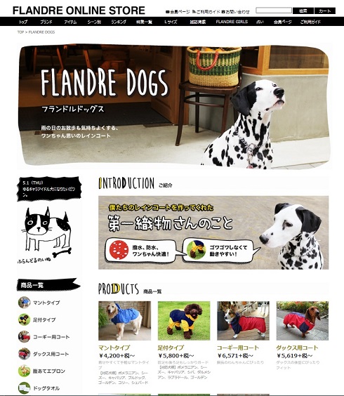 アパレル大手のフランドルは4月25日、自社通販サイトで犬用グッズの取り扱いを始めた。主要顧客のF1~F2層とペットの親和性が高いことから、新コンテンツ「フランドルドッグス」(画像)として展開する。