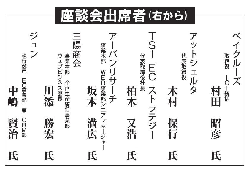 服をネットで買うことが珍しくなくなった今、有店舗アパレルはチャネルをまたいで情報や商品を求める消費者に対応すべく、オムニチャネル化への舵を切ろうとしている。一方、衣料品ECモールは大手資本の傘下で体力強化を図ったり、巨大モールの「ゾゾタウン」はM&Aを加速して関連サービスを強化するなどウェブ上の売り場も大きく変わろうとしている。そこで、本紙ではネット販売に積極的なアパレル6社のEC担当者に集まってもらい、各社のEC強化に向けた課題や差別化策、モールの活用法などを聞いた。