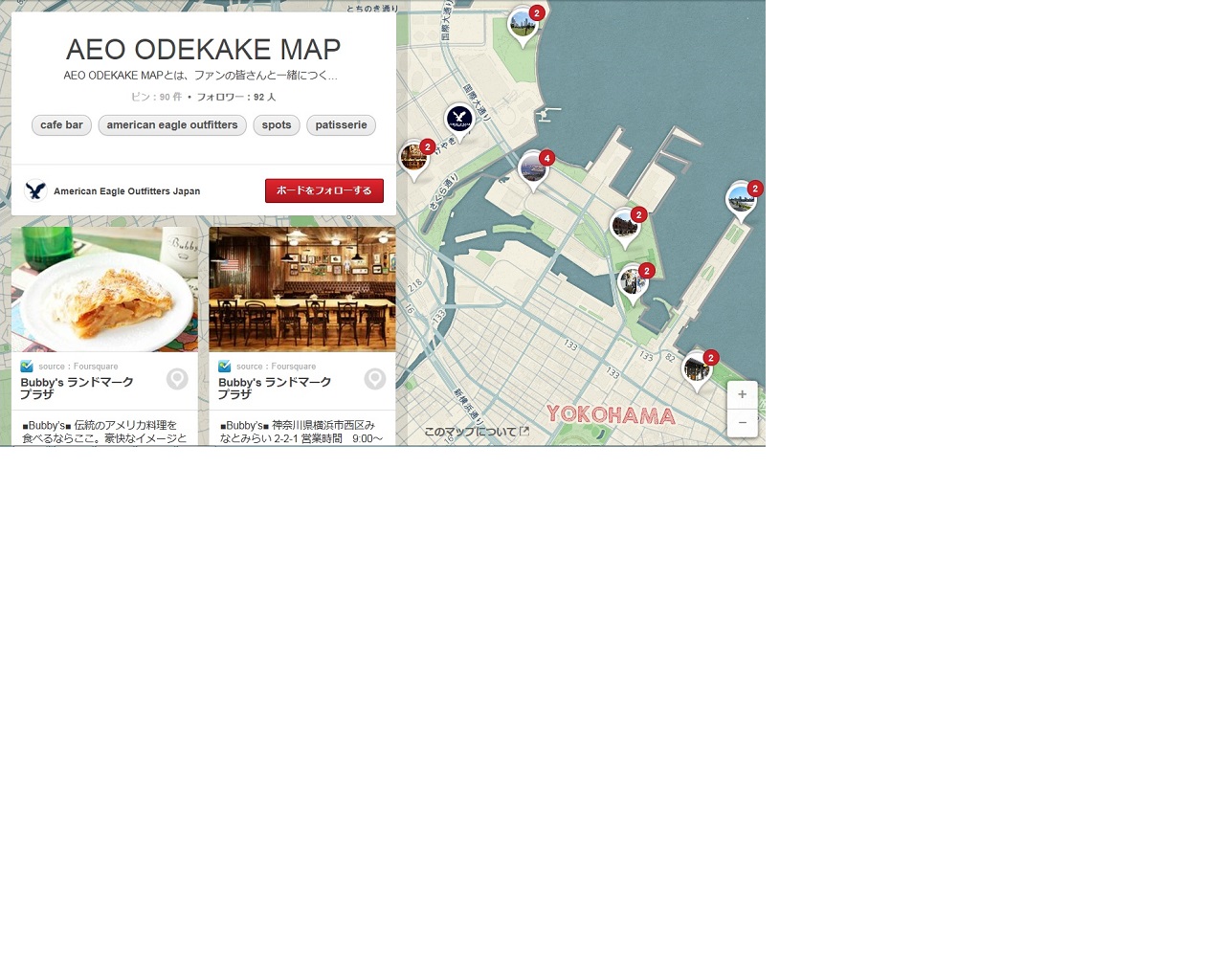 ウェブ上での集客策については一般的な広告手法に加え、SNSも活用する。今年前半はリアルの場への新規出店が多かったため、出店エリアの大学生などとタッグを組んで、AEO実店舗周辺のシティガイド「AEOODEKAKE MAP(オデカケマップ)」を通販サイトのコンテンツとして展開。店舗出店エリアにあるカフェやレストラン、公園などのお薦めスポットを大学生が取材し、記事を投稿してもらうことで消費者との一体感を出しているようだ(画像)。