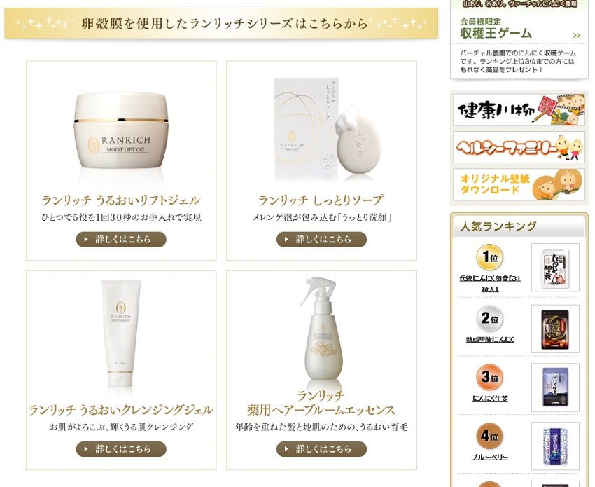 卵殻膜は美容成分として注目されつつある。独自成分の「ランシェル―L」を持ち、新商品を相次ぎ投入している点から、健康家族でも化粧品通販の展開に本腰を入れるのではないかと思われるが、同社によると、特に化粧品通販を積極化する考えはないとする。もともと、にんにくを中心とした健食・一般食品がメーンで、化粧品の展開も余った素材の有効活用を端緒としているためだ。