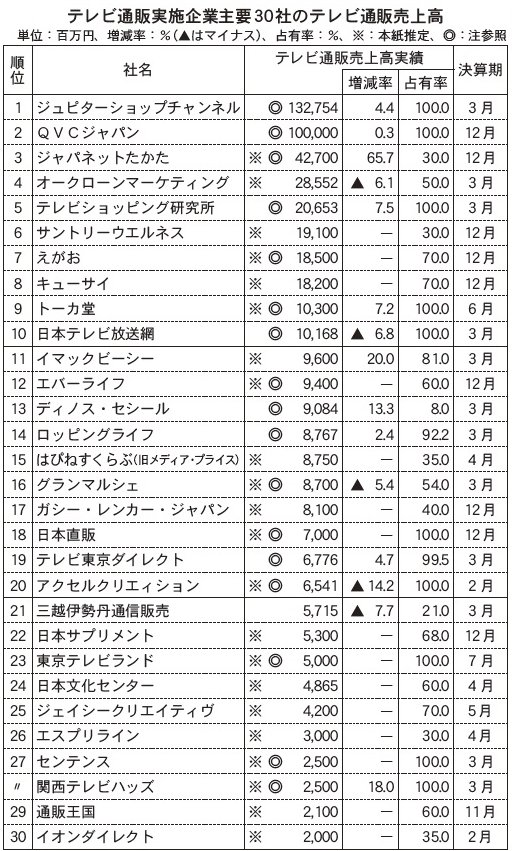 【2013年度のTV通販市場は?】 主要30社合計売上、5200億円超に