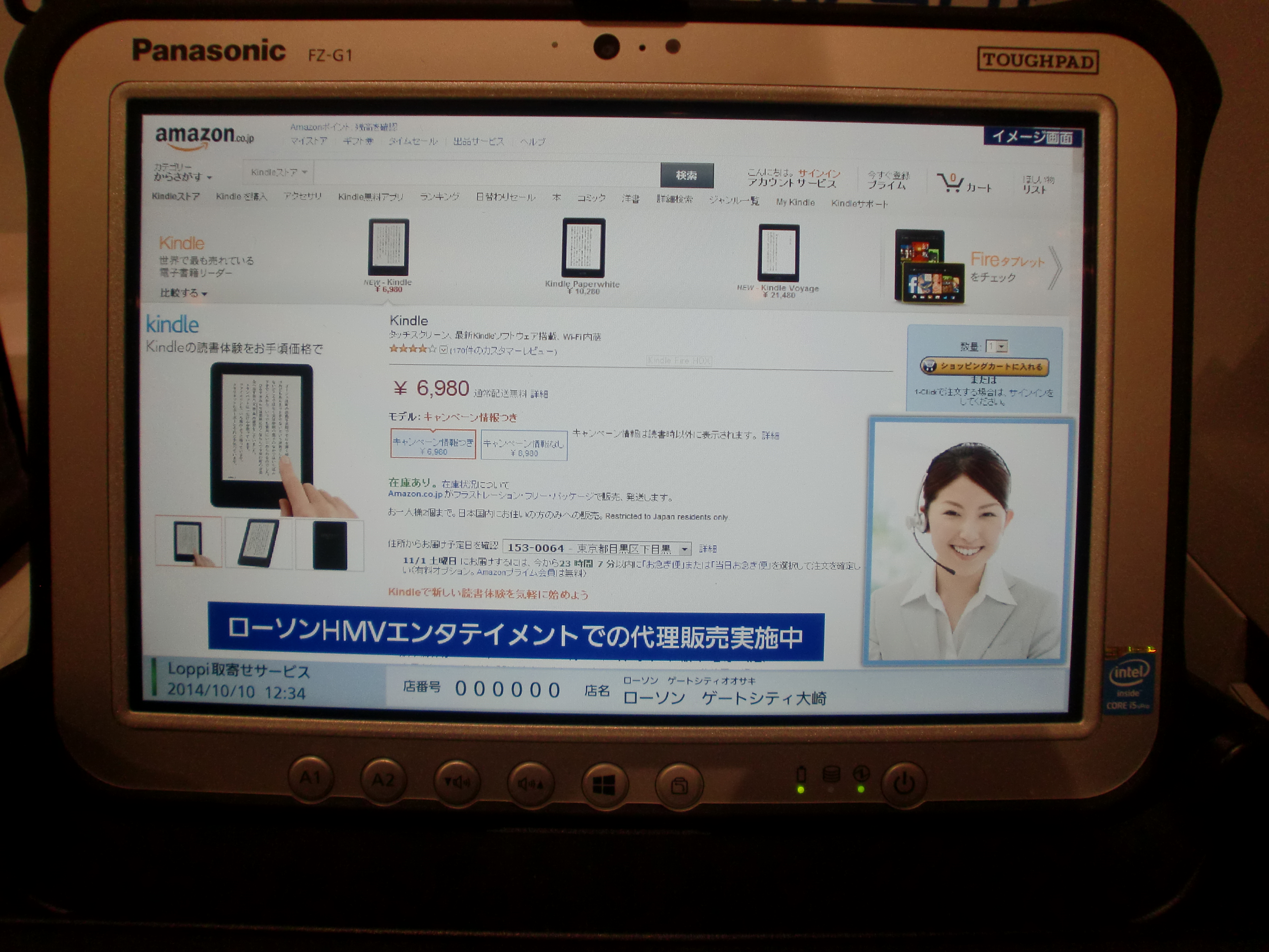 コンビニ店舗でのアマゾン商品の注文対応開始で注文、受取の際の来店時の「ついで買い」の促進やアマゾンからの手数料収入のほか、来年をメドに専用タブレット(右写真参照)を活用しながら各店舗の近隣で行なう「御用聞き」や店舗配送なども行う計画で、自社商品に加え、アマゾンをはじめとする他社商品で品ぞろえを強化し、サービス開始に備えたい考えもあるよう。