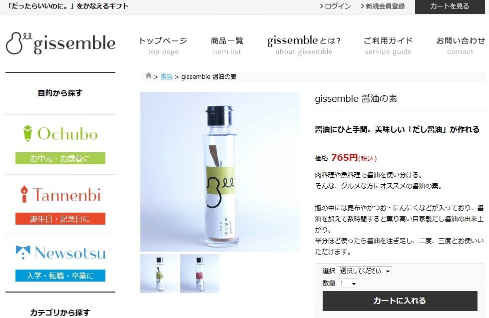 「ギッセンブル」は11月末にアマゾンにも出店。1月末から雑誌での告知なども実施する。また、ナックは宅配水事業やダスキン事業などを通して一般家庭に35万軒程度の顧客を持つが、納品の際などに担当者が直接顧客宅でギフトサービスを告知することも可能となる。同社は来期(2015年4月~)から本格的に「ギッセンブル」の販促を仕掛けていく計画で、来期1年間で1億円の売り上げを目標に掲げている。