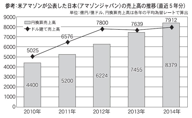 アマゾン、2014年の日本売上、3.5%増の79億ドルに 円換算では8379億円に