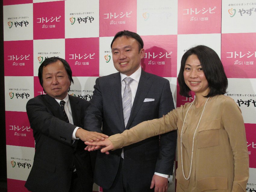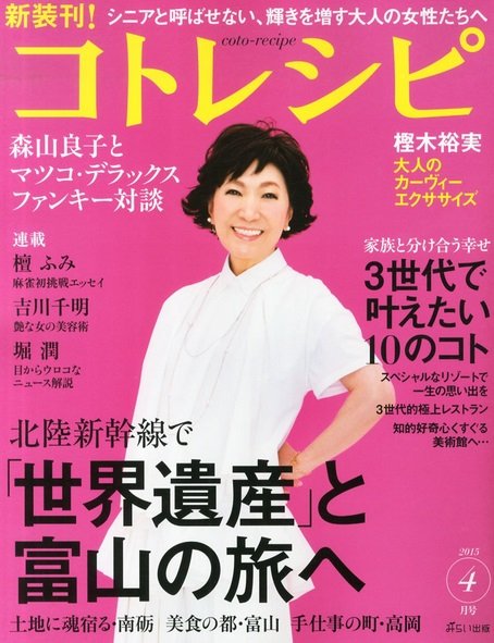 出版事業では、13年末に創刊、検証を進めてきたライフスタイル誌「コトレシピ」(=画像㊤)を新装刊(A4変形、通常148ページ、税別850円)。展開を本格化する。編集長に田中敏恵氏を迎え、隔月で年6回発行。全国の主要書店で展開する「通常版」(初回3万部)と、やずやの通販顧客などに送付する「ダイジェスト版」(同20万部)を用意した。複数種類ある通販顧客向け会報誌の一つとしても活用し、定期購読を促していく。3月5日に発売する初回号から、イメージキャラクターに、歌手の森山良子さんを起用した。