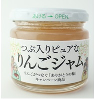 発売したのは「つぶ入りピュアなりんごジャム」。両社と取引がある福島県二本松市の生産者「羽山園芸組合」の「羽山りんご」を使用。現在ではりんごの放射性物質は検出限界値以下となったが、販売量は震災前の7~8割程度にとどまり震災前の水準に戻っていなかった。ジャムに加工して販売量を底上げし、復興支援につなげる。