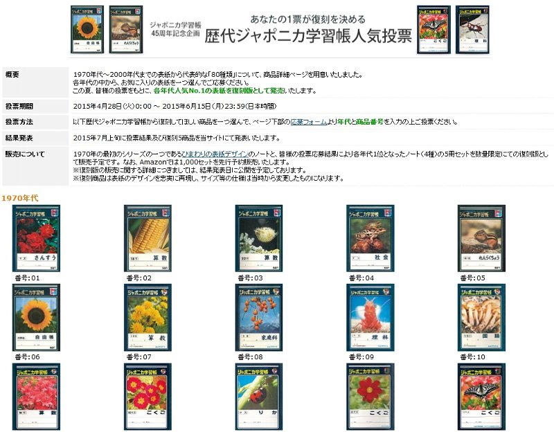 ショウワノート 「ジャポニカ学習帳」を復刻、アマゾンで歴代ノートの人気投票