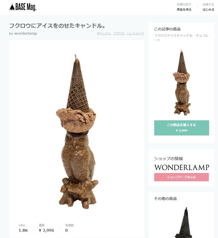 鶴岡CEOは「サイトのアクセス数はまだまだだが、初動としてはいい感じなのでは」と手応えを口にする。すでに、フクロウにソフトクリームを乗せたキャンドル「フクロウアイスキャンドル」といったヒット商品も生まれている。