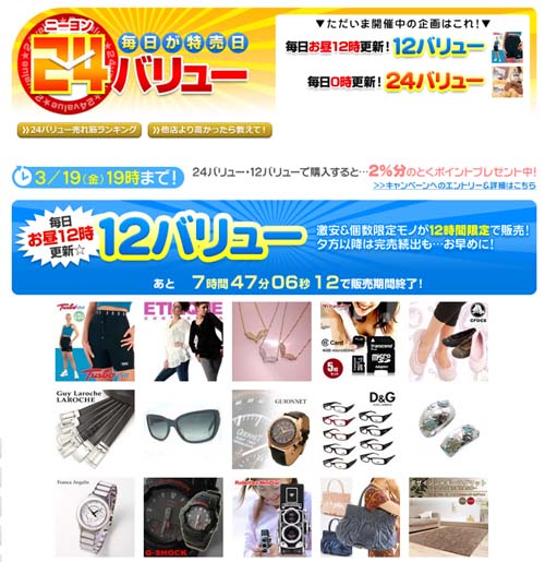 サイト新設の背景には、タイムセールサービスの好調な拡大がある。同社が2007年に通販サイト「ネットプライス」と携帯版サイト「ちびギャザ」でタイムセールコーナー「24バリュー」を開始。約3年でサイト全体の売り上げの約2割を占めるまでに成長した。10年2月の同コーナーの売上高は前年同月比37%増、購入者数も同41%増と拡大している。