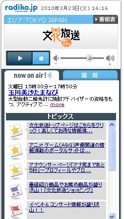 プレーヤー画面には再生・停止ボタンやボリュームバーのほか、「トピックス」として放送局から提供する情報リンクが表示される。首都圏の各局では、通販サイトへのリンクも設けており、放送中に紹介された商品をすぐに確認し、購入することが可能だ。