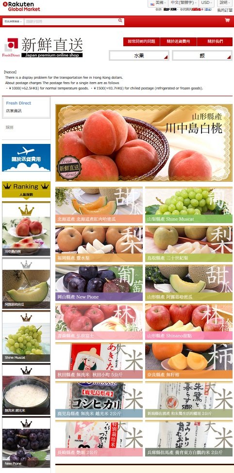 開設したのは「新鮮直送」で、ぶどうや柿、白桃などの果物や、ブランド米の「つや姫」やコシヒカリ「朱鷺と暮らす郷」などを販売。また、毛ガニやホタテなどの海産物のほか、高級乾物の乾燥なまこや乾燥あわびなどを取り扱っていく。