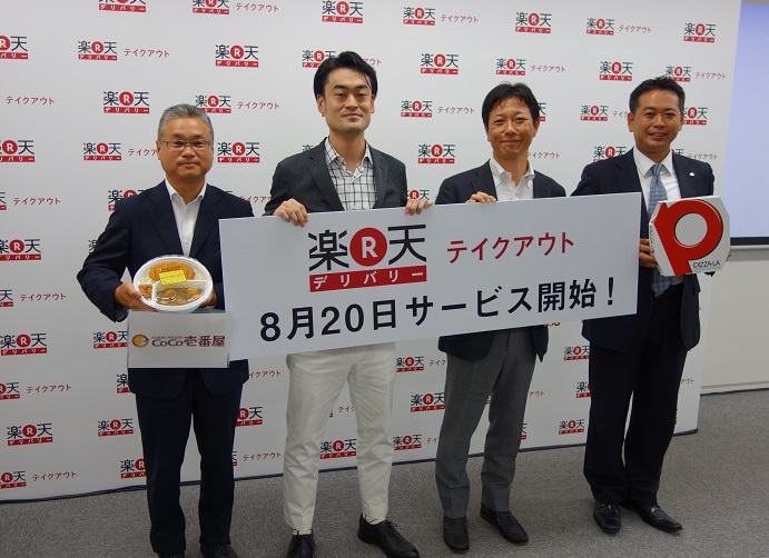 20日の記者会見で高橋理人常務執行役員は「帰宅中にスマートフォンから夕食を注文し、最寄り駅の店舗でカレーやピザを受け取って、家に帰って食べることなどができる。新たな食事に関する消費スタイルが新サービスを通じて拡大していくのではないか」などと話した。また、事業者からも2社の代表者が登壇。カレーハウスCoCo壱番屋を運営する、壱番屋の宮崎龍夫取締役東日本本部長は「楽天デリバリーに参画したことなどで、宅配売り上げの50%はネット経由の注文になった。ネットからのテークアウト注文を可能にすることで売り上げを拡大したい」。また、ピザーラなどを運営するフォシーズの五月女弘史ピザーラ事業本部執行役員本部長は「テークアウト市場は年々伸びており、伸びしろもある。当社のビジョンと共感できるため楽天デリバリーに参画した」など、新サービスへの期待感を示した。