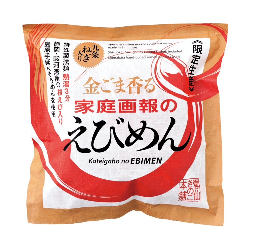 新商品は「金ごま香る家庭画報のえびめん」(画像(上)=8袋組、税込4752円)。